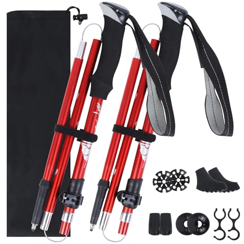 CYJJYZ 2Pcs Bastoni Trekking Pieghevoli, Bastoncini Trekking in 7075 Alluminio, ...