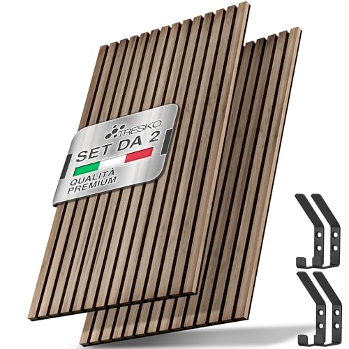 TRESKO 2 pannelli acustici in legno, 120 x 60 cm, con 4 ganci appendiabiti, rive...